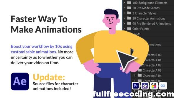 Character Animation Pack is a tool for making modern explainer videos or ads for social media. This character animation pack is focusing on providing high-quality animated clips and how-to guides even for complete beginners who never made an explainer video before. Everything in the animations pack is made to be as simple as possible to use. That means no installation, no plugins, and no need to have a powerful PC. I recommend using this character animation pack with Adobe After Effects, however, there is one bonus all character animations and backgrounds are also rendered as high-quality Quicktime movies with transparent backgrounds. That means you can make explainer videos with these elements in any software you like.