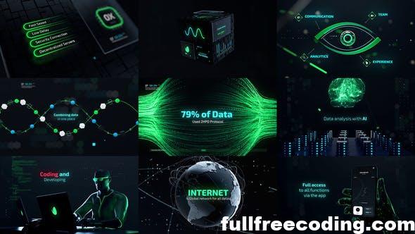 After Effects Template about modern and hi-tech cyber technologies, big data processing and future visions. Project contain 17 scenes and many placeholders for text and other info like icons and another graphic elements.