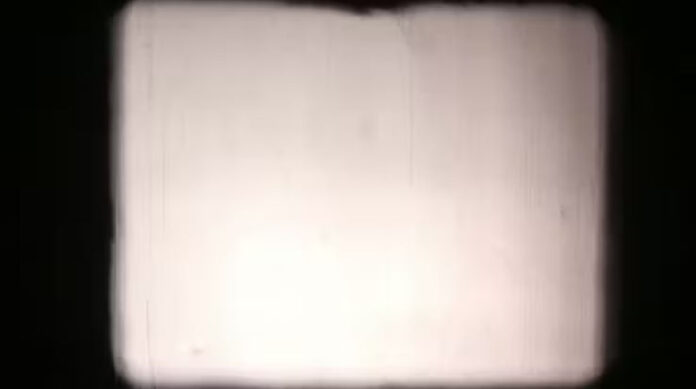 Old film dust and scratches on the screen.