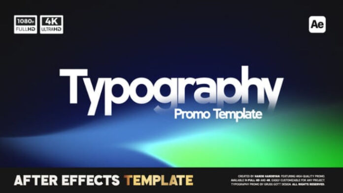 Typography Promo is a high-energy After Effects template designed for brand promotions, openers, and advertisements. With bold typography and vibrant pre-rendered gradient backgrounds, this 21-second template provides a visually engaging way to promote products or services. Easily customizable, it offers flexibility for a variety of creative projects.